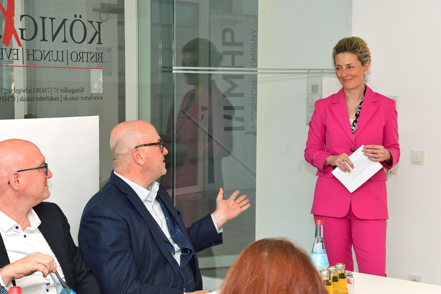 Im Anschluss daran hielt Sigrid Zimmerling einen aufschlussreichen Vortrag über die aktuellen wirtschaftlichen Herausforderungen und Chancen im Landkreis Ludwigsburg. Sie beleuchtete zentrale Themen wie: