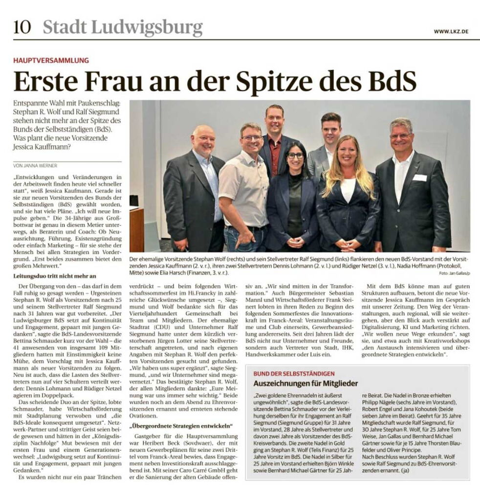 Am Freitag, den 22.09.2023 veranstaltete der BDS Ludwigsburg den 1. BDS Unternehmertag. Hierzu gab es vorab und danach einige Berichte in der LKZ. Lesen Sie hier: