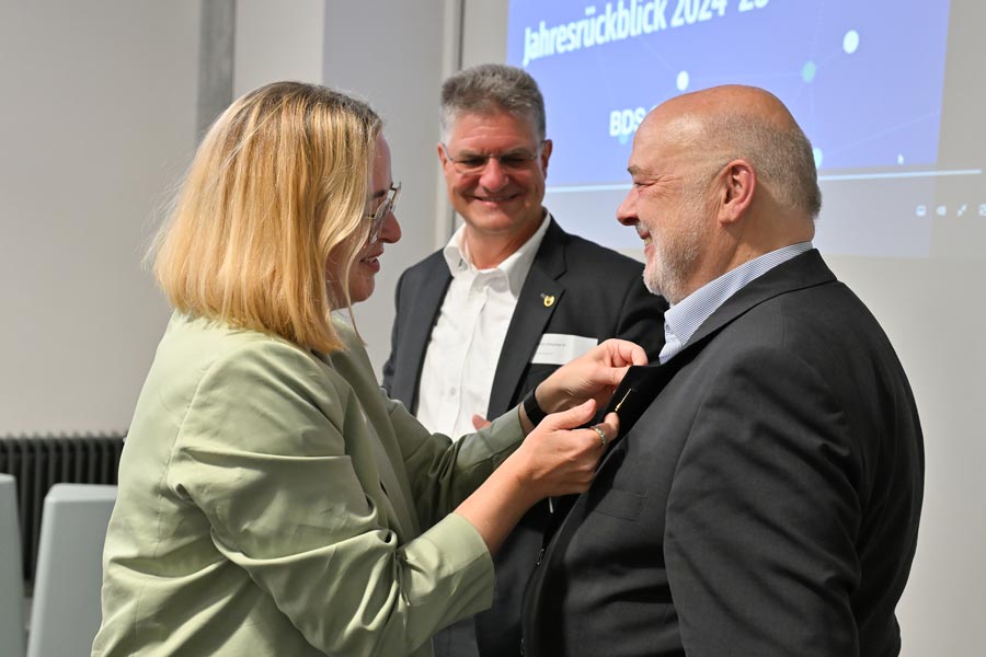 Zu Beginn begrüßte der bisherige Vorsitzende Stephan R. Wolf die anwesenden Mitglieder sowie Bettina Schmauder, Präsidentin des BDS Landesverbands Baden-Württemberg. Er dankte der gastgebenden Firma Sovdwear herzlich für die Gastfreundschaft und die Bereitstellung der Räumlichkeiten.