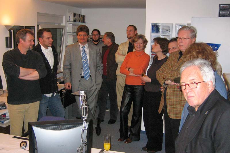 Nach freundlicher Begrüßung durch Stephan R. Wolf und Studioleiter Siegfried Zittinger wurden die Gäste zum „Video-Workshop“ gebeten. Die Firma Film- und Videotechnik Zittinger produziert ausschliesslich digital, inzwischen auch in High Definition (16:9). An drei verschiedenen Video-Bearbeitungsplätzen – MAC Final Cut Pro, AVID und Solitär – zeigten die Mitarbeiter, Witold Konrad und Chris Riekert den Interessierten, wie Videos professionell bearbeitet werden.